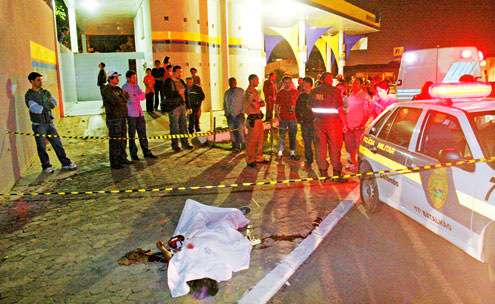 Faltavam 45 minutos para o Posto Ipiranga da esquina da Rua das Olarias com a Avenida São Gabriel, em Colombo, fechar quando foi assaltado, na noite de domingo. Um policial militar em horário de folga, que abastecia no local, reagiu ao assalto e matou um dos bandidos. Os outros três fugiram e não foram localizados.
