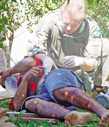 Segundo a Polícia Militar, Rodrigo dos Santos estava de moto e teria reagido ao assalto. Baleado nas costas e na perna, o rapaz foi encaminhado pelo helicóptero da Polícia Rodoviária Federal (PRF) ao Hospital do Trabalhador. A arma que teria sido usada no crime foi jogada num terreno baldio perto da Rua das Dálias.