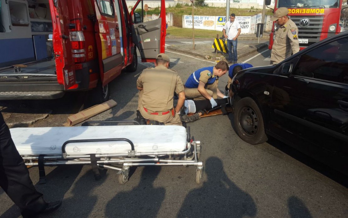 Uma mulher sofreu uma fratura no fêmur no início da tarde desta quarta-feira (9) em um acidente no bairro Bom Retiro, em Curitiba. Ela conduzia uma moto pela avenida Desembargador Hugo Simas no sentido Pilarzinho quando foi atingida por um carro na esquina da rua Ângelo Zeni. Segundo testemunhas, a vítima furou o sinal vermelho, mas ela alegou que o erro foi do motorista do automóvel.