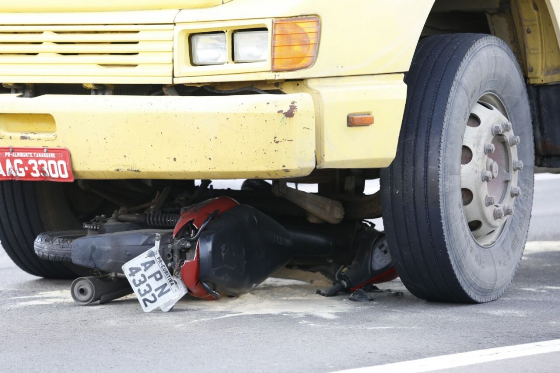 A moto Honda Bis, de placa APN 4332, foi arrastada pelo caminhão. A Polícia Rodoviária Federal (PRF) fez o teste de bafômetro no motorista, que deu negativo. Erieu conta que estava trabalhando. “Fui levar uma carga de cimento no Sítio Cercado e estava voltando pra casa”.