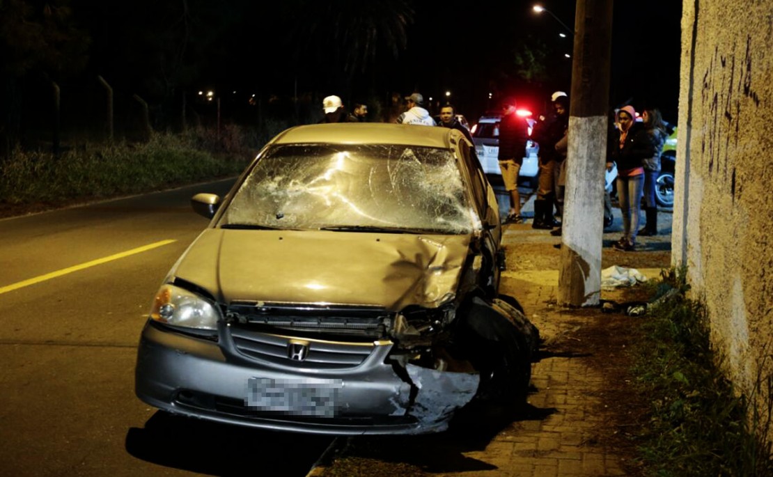 Acidente entre um carro e uma motocicleta, na Rua General Potiguara, no bairro Fazendinha, em Curitiba, deixou o motociclista ferido em estado grave. A colisão aconteceu por volta das 20h desta terça-feira (23). Depois de ser atingido pelo veículo, Ricardo Rodrigues dos Santos, 21 anos, foi arremessado junto com a motocicleta contra um poste.
