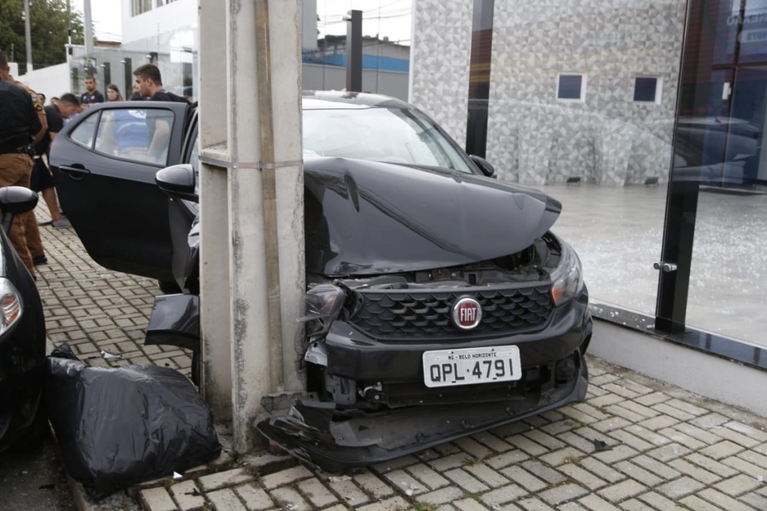 Antes de se chocar contra o poste, o carro atingiu o muro de vidro de uma empresa e quebrou cerca de três placas de vidro. Funcionários da empresa não gravaram entrevista, mas disseram que só viram o carro passar e bater, sem dar mais detalhes.