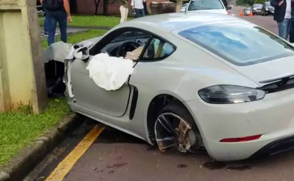 Um motorista de um Porsche avaliado em quase R$ 700 mil bateu em um carro e dois postes na tarde de quinta-feira (25) na rua Professor Pedro Viriato Parigot de Souza, no bairro Mossunguê, em Curitiba. O veículo de luxo tinha apenas 100 quilômetros rodados e ficou completamente destruído, com rodas quebradas e air bags acionados.