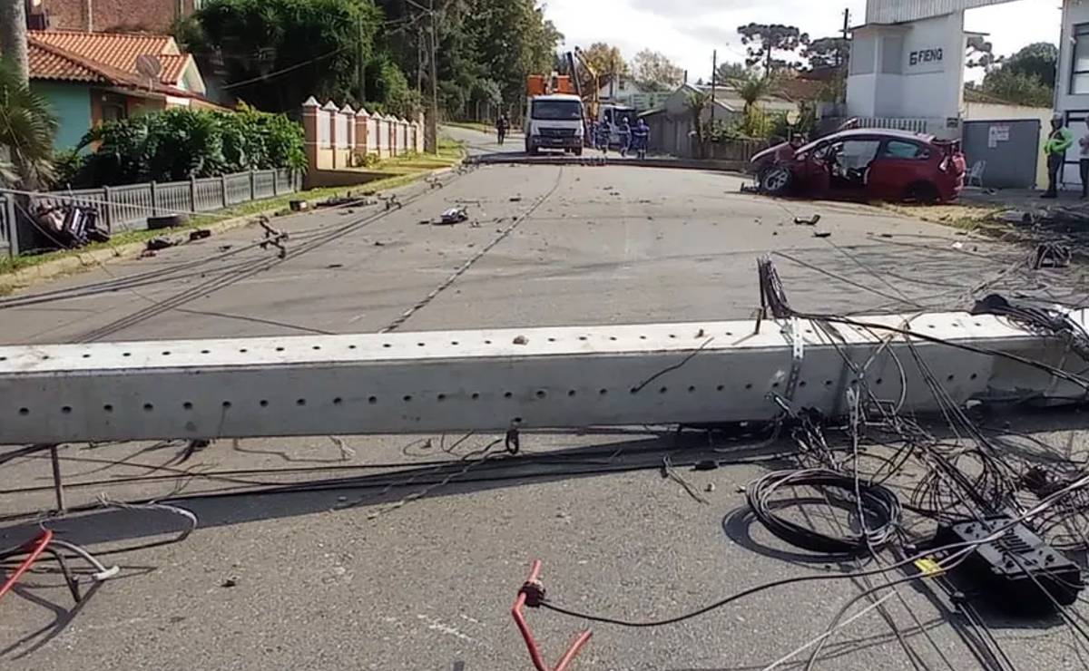Um acidente de carro terminou com a queda de dois postes na madrugada deste domingo (7), no bairro de Santa Felicidade, em Curitiba. Segundo informações do local, o motorista perdeu o controle da direção e atingiu o primeiro poste. Depois, o segundo poste também quebrou, ao meio, com o impacto. O acidente foi por volta das 2h. Ninguém ficou ferido.