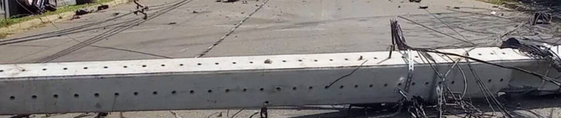 Motorista derruba postes em Curitiba e some do local do acidente; Motor voou pra longe do carro!