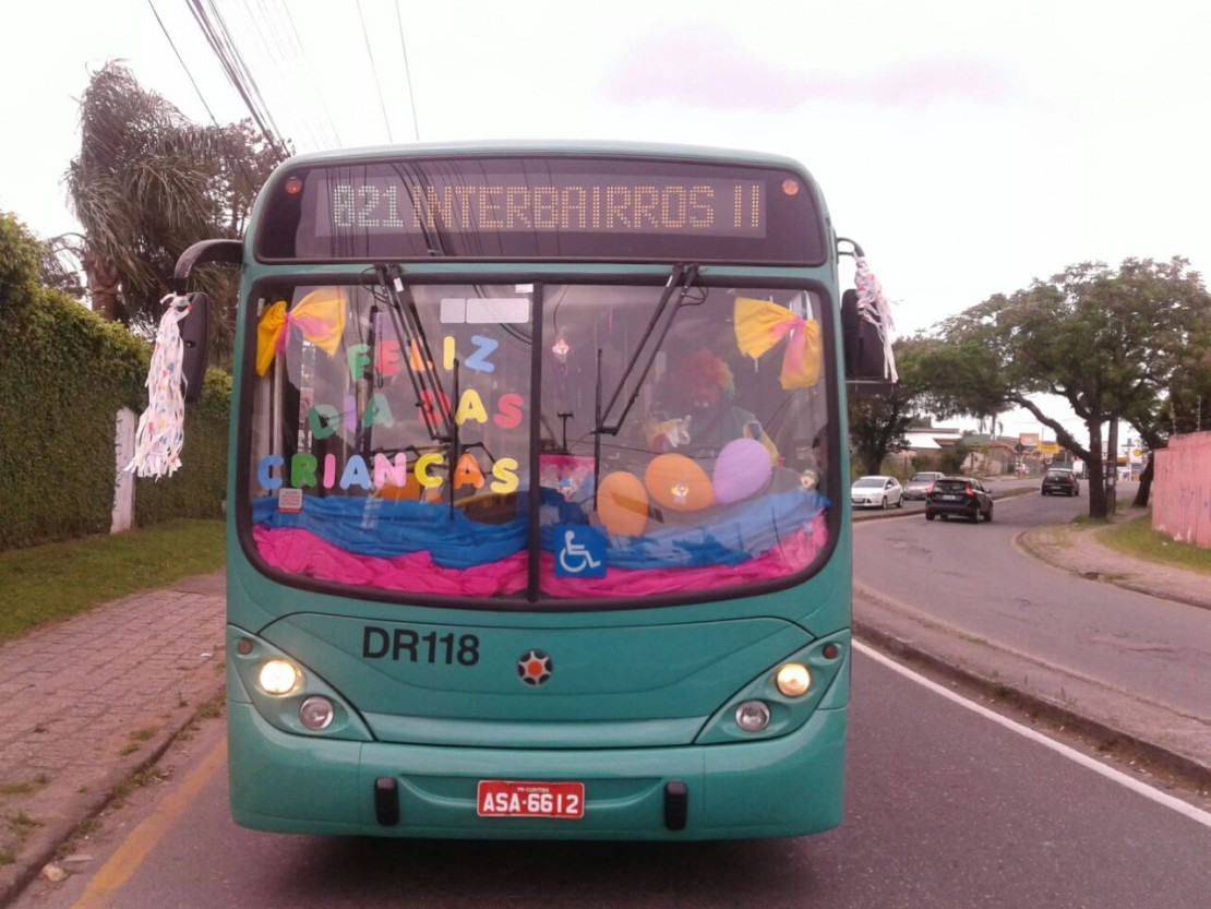 Quem embarcou no Interbairros 2 conduzido por Luciano Farias nesta quarta-feira (12) teve uma doce surpresa. Farias, que é funcionário da empresa CCD, decorou o veículo e distribuiu um kit com balas, pirulitos, bombons e outras delícias para os passageiros, pequenos e grandinhos, que precisaram usar a linha.