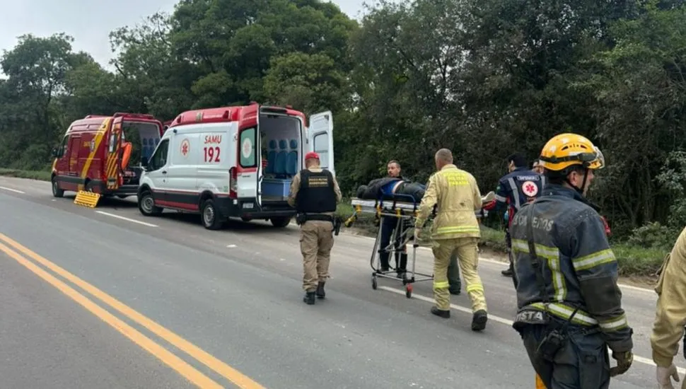 O acidente envolveu dois carros que colidiram violentamente e, com o impacto, acabaram saindo da pista e caindo em um barranco às margens da rodovia. A situação ficou ainda mais crítica quando um dos veículos capotou, deixando o motorista completamente preso entre as ferragens retorcidas.
