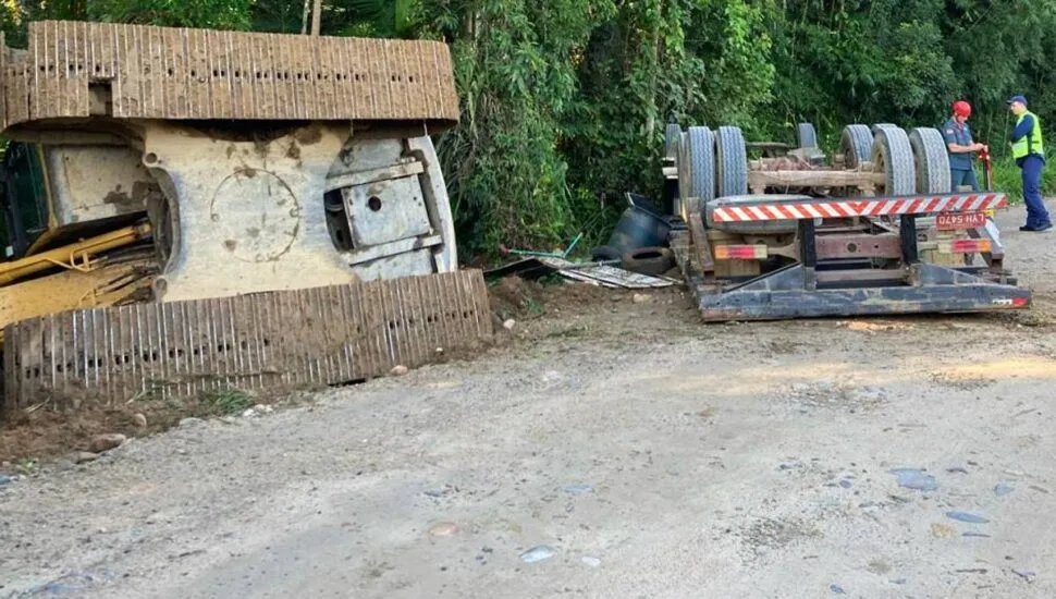 O motorista de um caminhão morreu após se acidentar, sozinho, em um trecho da Estrada da Limeira, em Guaratuba, litoral do Paraná. Segundo o Corpo de Bombeiros o caminhão carregado com uma máquina pesada tombou em cima do motorista, que tinha sido ejetado durante o acidente.