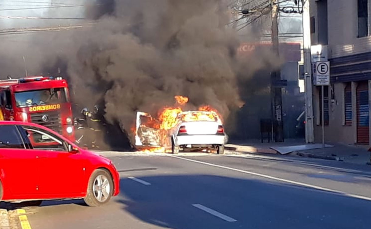 Um carro em chamas chamou a atenção de quem passava pela Rua Visconde do Rio Branco, em São José dos Pinhais, região metropolitana de Curitiba, na tarde desta quinta-feira (09). A situação aconteceu na esquina com a Rua Manoel Ribeiro de Campos, por volta das 17h.