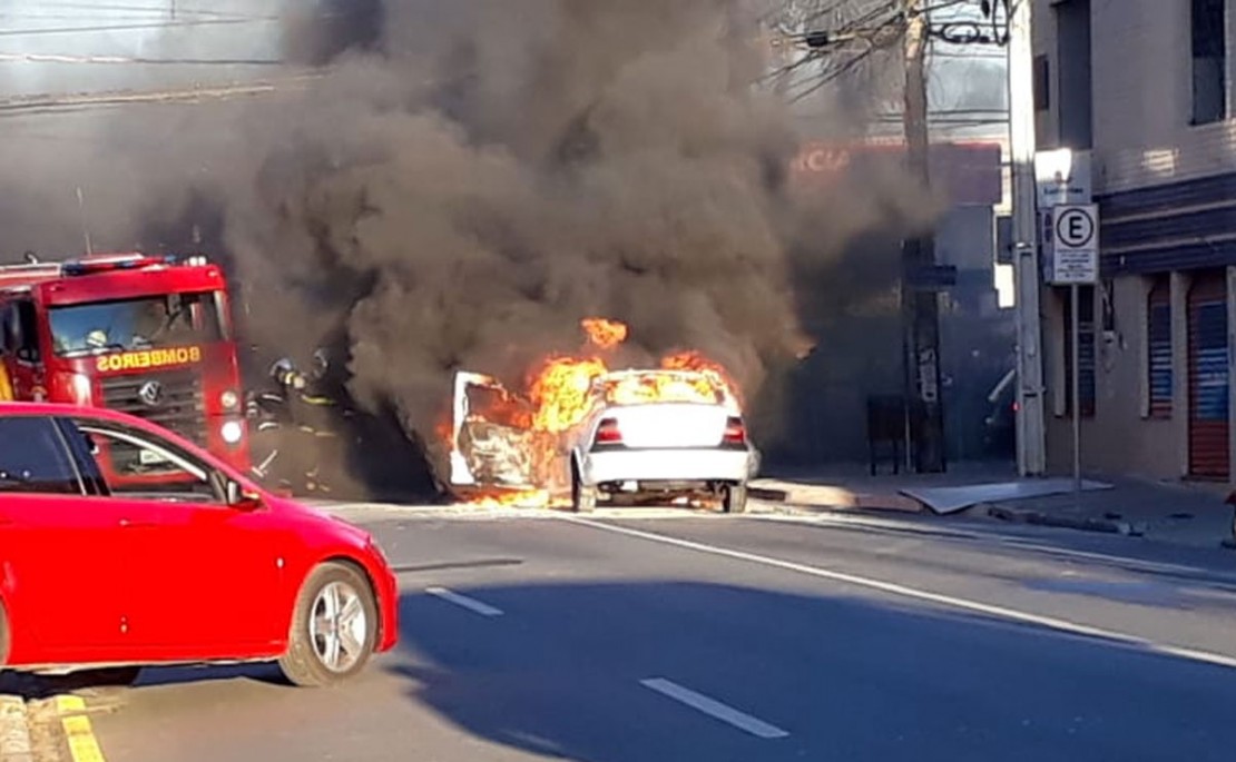 Um carro em chamas chamou a atenção de quem passava pela Rua Visconde do Rio Branco, em São José dos Pinhais, região metropolitana de Curitiba, na tarde desta quinta-feira (09). A situação aconteceu na esquina com a Rua Manoel Ribeiro de Campos, por volta das 17h.