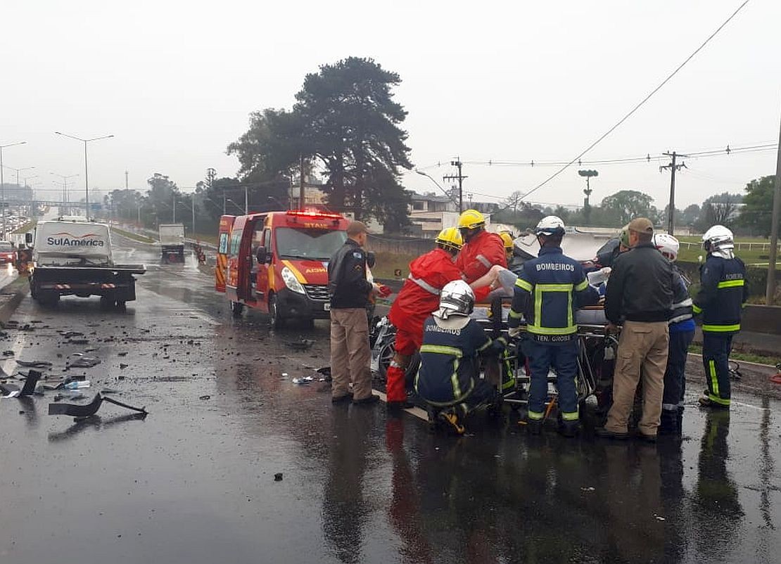 “A motorista teve uma das pernas fraturada e tivemos que cortar o teto e portas do carro para retirá-la”, explica o tenente Lucas Gross, dos Bombeiros. A mulher socorrida tem 42 anos e estava com a mãe de 64 anos no carro.