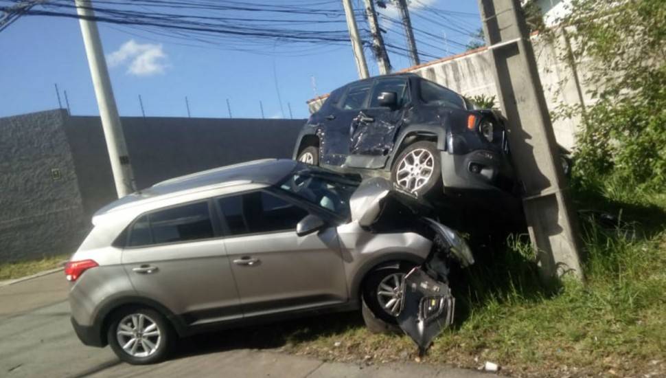 Um motorista, com cerca de 30 anos, causou um acidente ao estilo cinematográfico na tarde desta quarta-feira (9), no Parolin, em Curitiba. Ele estava em um Jeep Renegade e, segundo testemunhas no local, teria furado a preferencial entre as ruas Professor Leônidas da Costa e Dr. Pamphilo d’Assumpção. Com a manobra proibida, ele atingiu uma SUV que foi parar debaixo do Jeep. Os dois carros também atingiram um poste. O acidente foi por volta das 13h40. Apesar da imagem, ninguém se feriu.