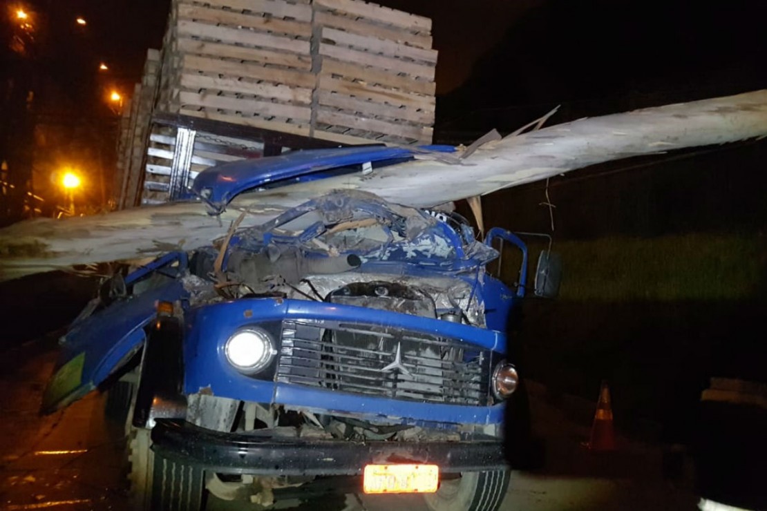 Um eucalipto seco caiu repentinamente em cima de um caminhão e destruiu por completo a cabine. O motorista, que estava dentro do veículo, incrivelmente não teve nenhum ferimento. O acidente foi em Rio Branco do Sul, município da Região Metropolitana de Curitiba, na noite desta quinta-feira (11).
