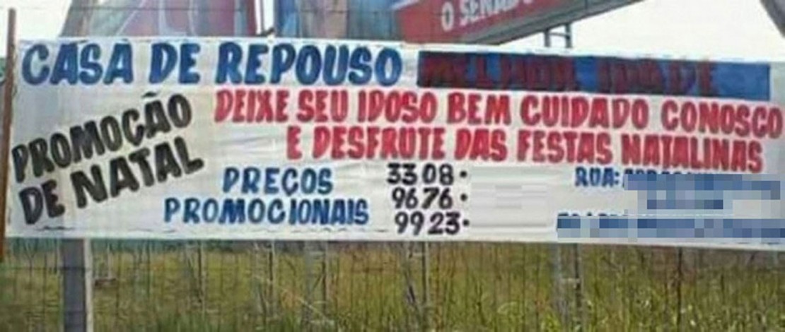 O banner supostamente pertenceria a uma casa de repouso, que já negou envolvimento com o caso, localizada no bairro de Xaxim, região sul de Curitiba. Tanto nome quanto número de telefone da instituição se encontram no anúncio. Uma frase do cartaz diz: “Deixe seu idoso bem conosco e desfrute das festas natalinas”. Em um canto do anúncio, aparecem indicações de “promoção de Natal” e “preços promocionais”.