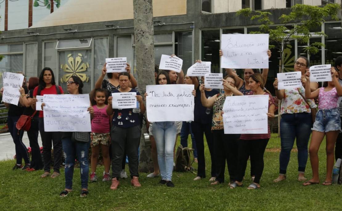 Mais um protesto de pais, funcionários e professores dos Centros de Educação Infantil (CEIs) de Curitiba ocorre na tarde desta segunda-feira (4), em frente ao prédio da prefeitura, no Centro Cívico. A movimentação começou por volta das 14h e reunia, até às 14h40, cerca de 30 pessoas. O motivo do protesto é o novo edital para a renovação dos contratos dessas instituições com a prefeitura, em 2020.