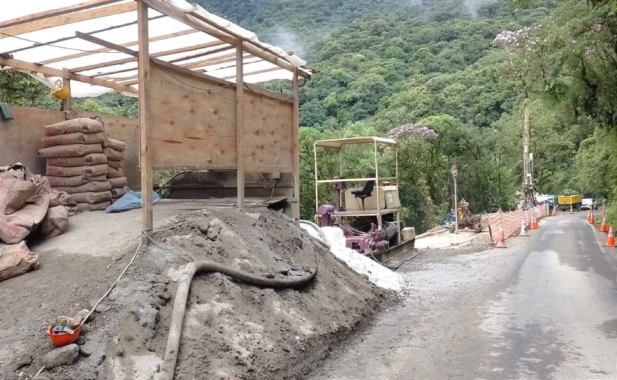No km 8, onde o escorregamento de terra, árvores e rochas atingiu a pista, foi recomposto o talude e executados novos dispositivos de drenagem de águas da chuva. Os serviços estão concentrados agora na perfuração da rocha para, na sequência, instalar uma tela metálica de alta resistência. No km 12, estão sendo removidos os materiais soltos do escorregamento e de reconformação do talude.
