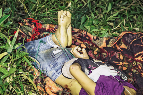 “Acreditamos que o crime aconteceu em outro local. Aproveitaram que esta região é afastada para se livrar do cadáver. Ela também foi asfixiada”, explicou o tenente Nascimento, do 22.º Batalhão da Polícia Militar. Apesar da crueldade dos assassinos, por baixo das cordas foram colocados pedaços de pano, para não esfolar a pele da vítima.