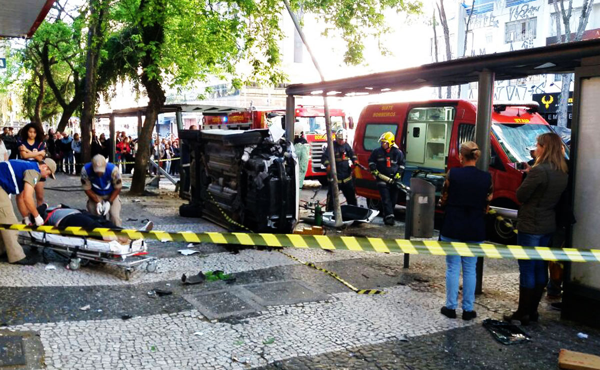 Uma mulher foi atingida por carro desgovernado por volta das 7h30 da manhã desta sexta-feira (28), em um ponto de ônibus localizado na Avenida Marechal Floriano Peixoto, em frente a uma agência da Caixa Econômica Federal, no Centro de Curitiba.