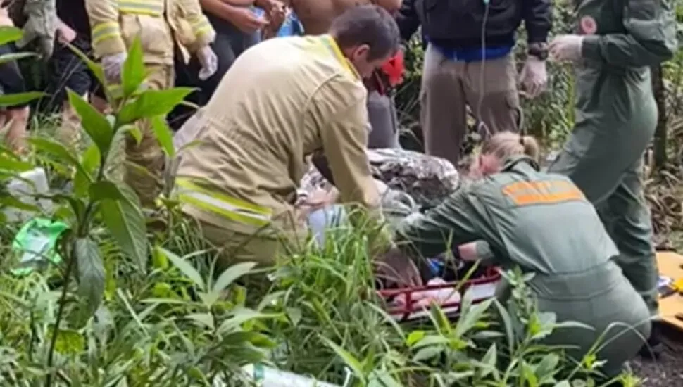 Além do Corpo de Bombeiros, um helicóptero do Batalhão de Polícia Militar de Operações Aéreas (BPMOA) também foi acionado para socorrer a jovem na cachoeira.