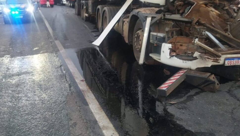 Um acidente envolvendo dois caminhões e dois automóveis no início da noite desta quinta-feira (21) interdita totalmente o Contorno Leste (BR-116), na altura do km 106, em São José dos Pinhais. De acordo com a Polícia Rodoviária Federal (PRF), o acidente múltiplo provocou uma vítima grave, que foi socorrida pelo Corpo de Bombeiros e encaminhada a um hospital da região.