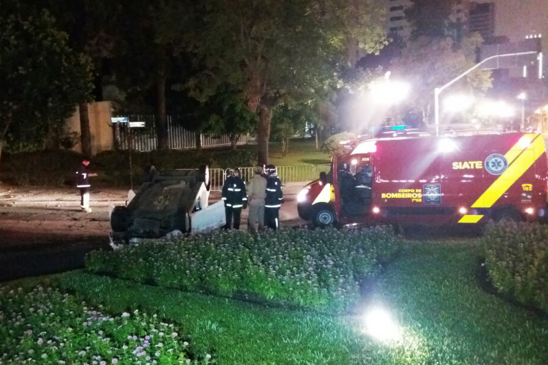 A volta da balada acabou em acidente para um motorista, de 30 anos, na madrugada deste domingo (2). Ele perdeu o controle da direção e capotou o New Fiesta que dirigia na rotatória da Avenida Cândido de Abreu, bem em frente à Prefeitura de Curitiba, no bairro Centro Cívico.