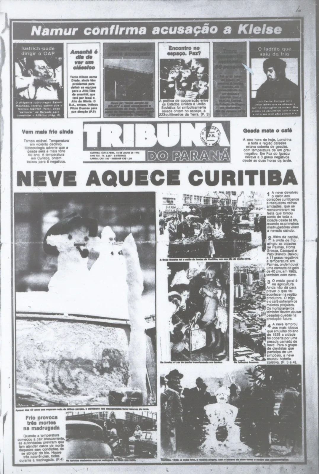“Neve aquece Curitiba”. Foi assim que a Tribuna do Paraná noticiou na década de 1970 o fenômeno nunca mais visto, pelo menos não com tamanha proporção, na capital.