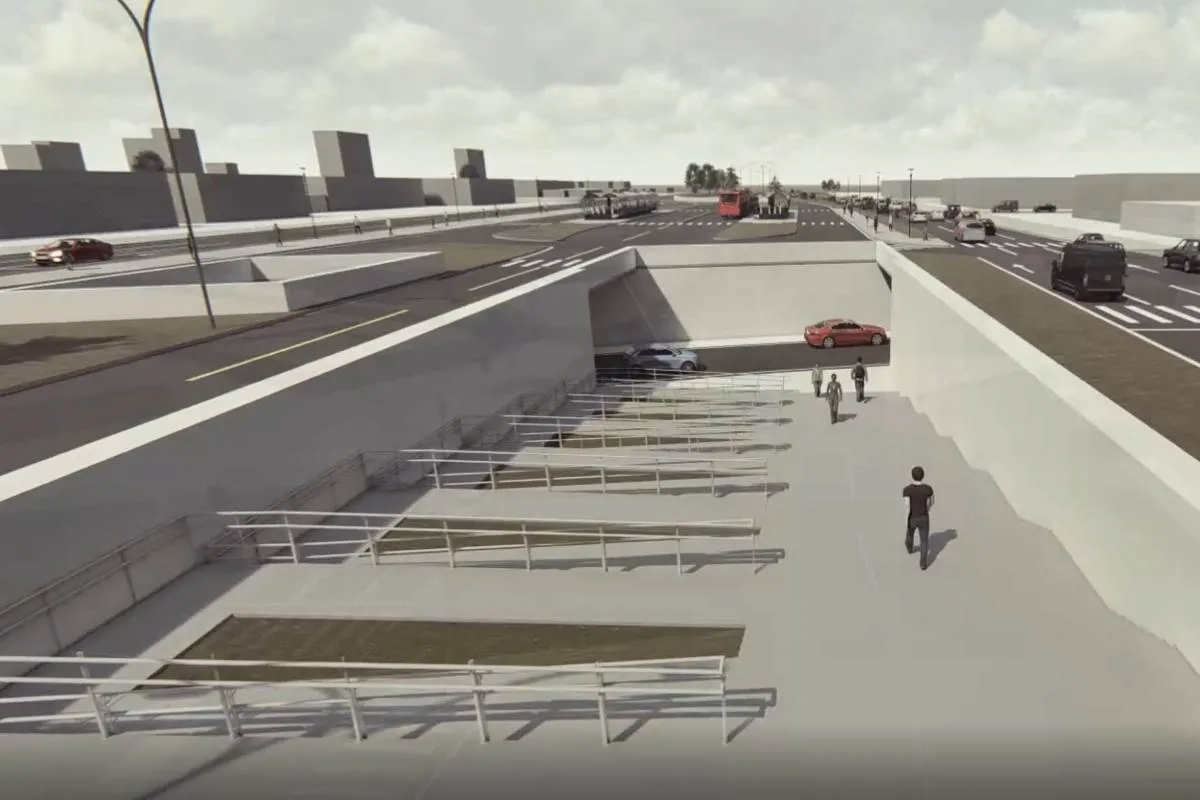 O projeto prevê a construção das trincheiras e a requalificação das vias do entorno, com melhorias no pavimento, iluminação pública, acessibilidade, sinalização viária e paisagismo.