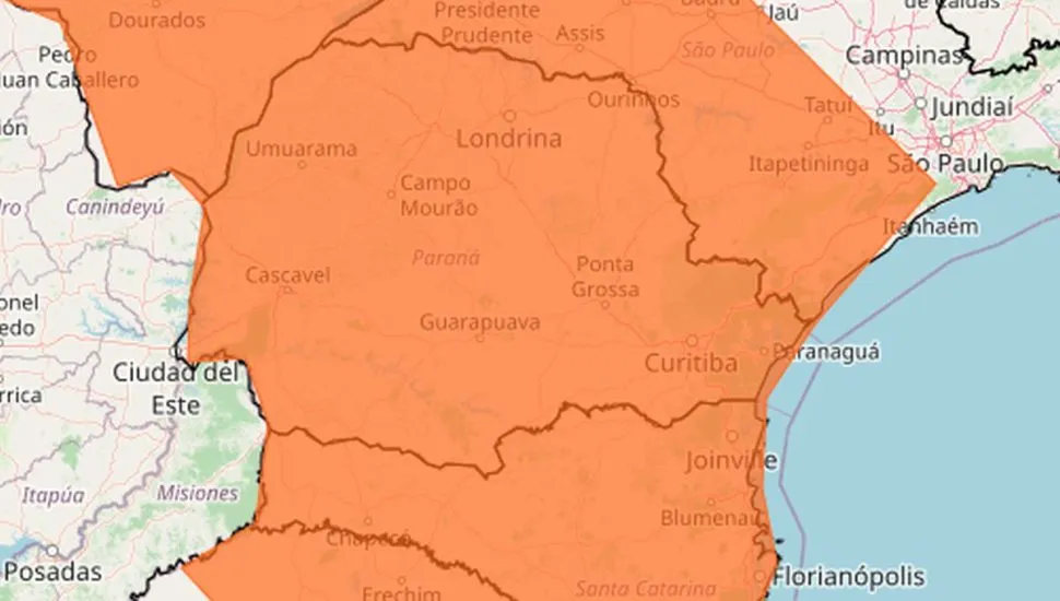 Está valendo, desde as 10h38 deste domingo (12/10), um novo alerta laranja, com grau de severidade “PERIGO” para todo o Paraná, inclusive região de Curitiba e imediações. A previsão do Instituto Nacional de Meteorologia é de chuvas intensas e tempestades, com ventos podendo chegar a 100km/h e possibilidade de grande volume de precipitação.