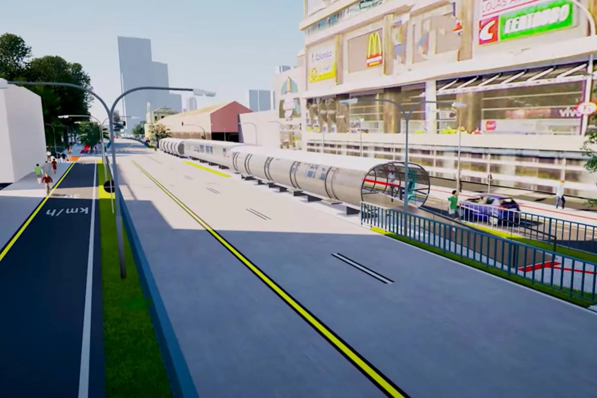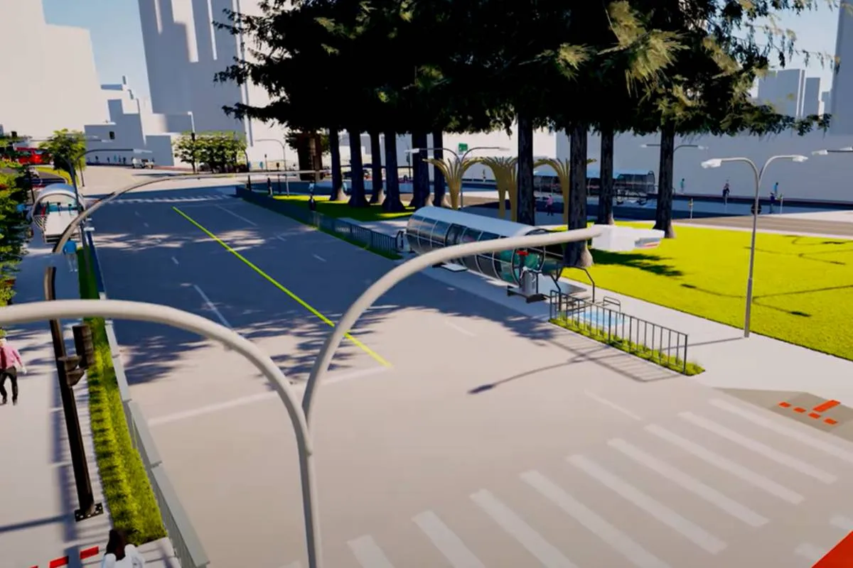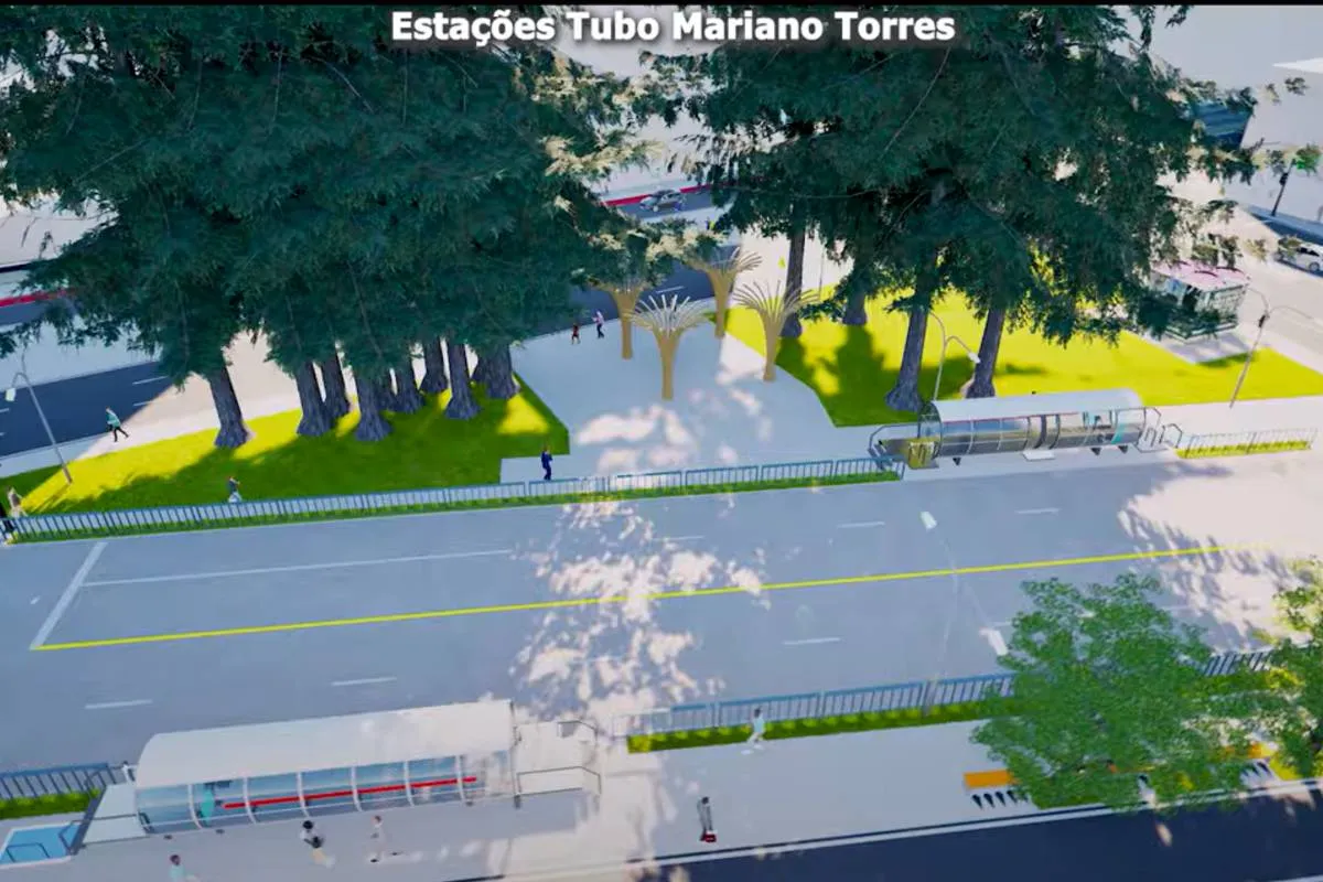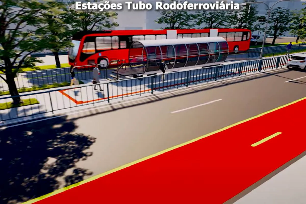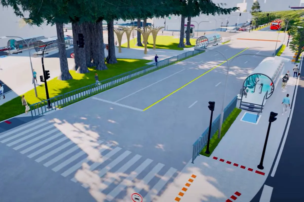 Além das estações modernizadas, a simulação em 3D ilustra as melhorias urbanas planejadas para beneficiar todos os modais de transporte. O projeto prevê a construção de um novo pavimento em concreto exclusivo para ônibus biarticulados, juntamente com a ampliação da calçada na Praça Eufrásio Correia, a instalação de ciclovias e a reorganização da sinalização viária.