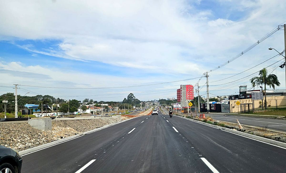 Outro trecho liberado nesta semana segundo a Prefeitura de Curitiba, foi o estreitamento da pista da rodovia, sentido Pinheirinho, em frente à loja Balaroti.