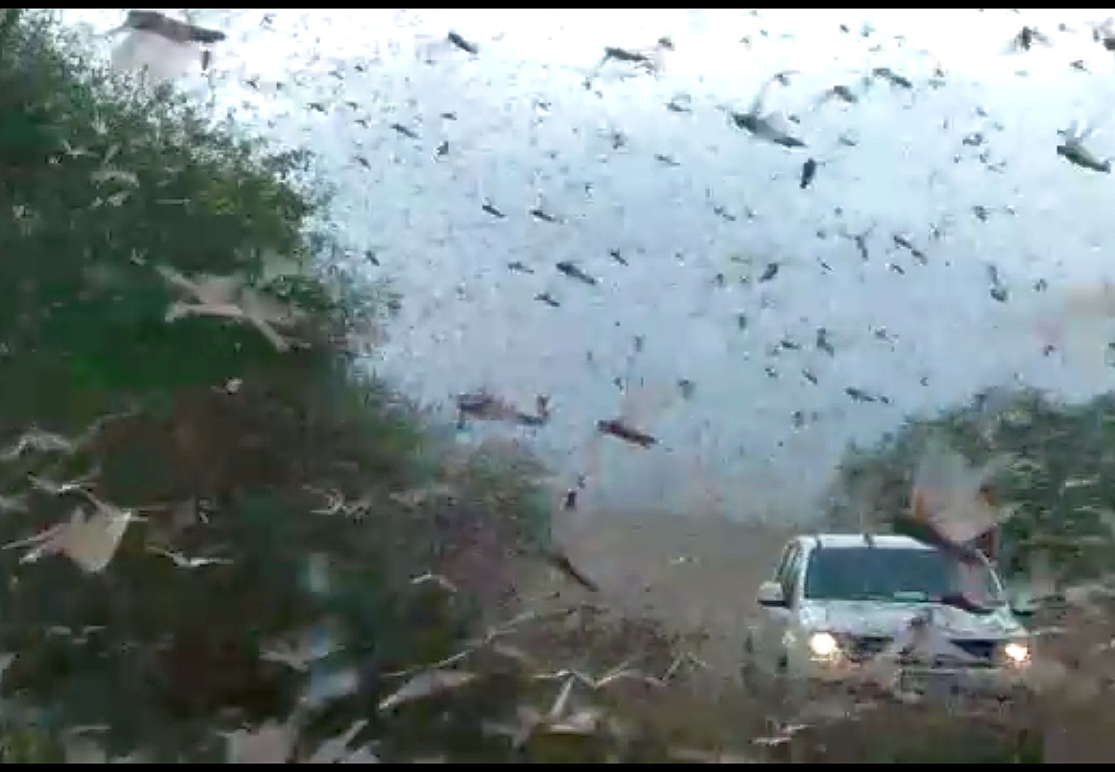 Em uma das áreas, a nuvem de gafanhotos chegou a 10 km de extensão. Um quilômetro quadrado da nuvem comporta ao menos 40 milhões de bichos. Eles podem comer pastagens em apenas um dia: o equivalente ao alimento de 2 mil vacas.