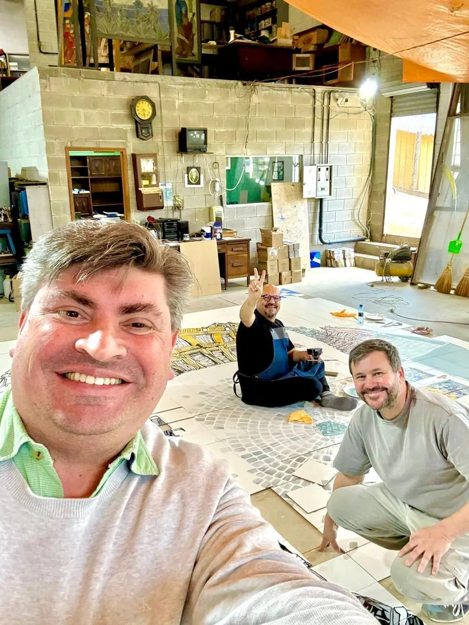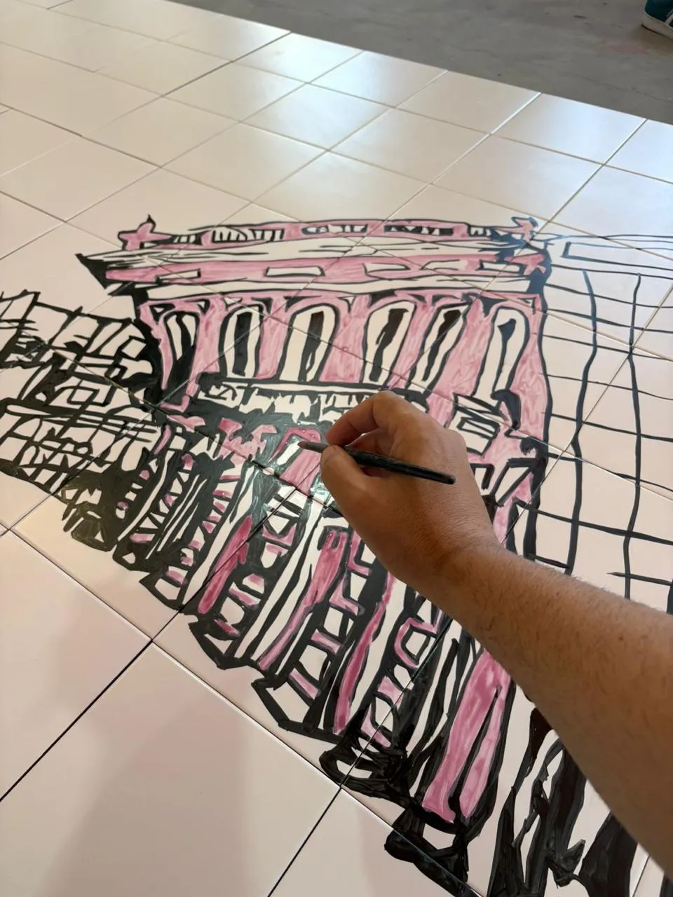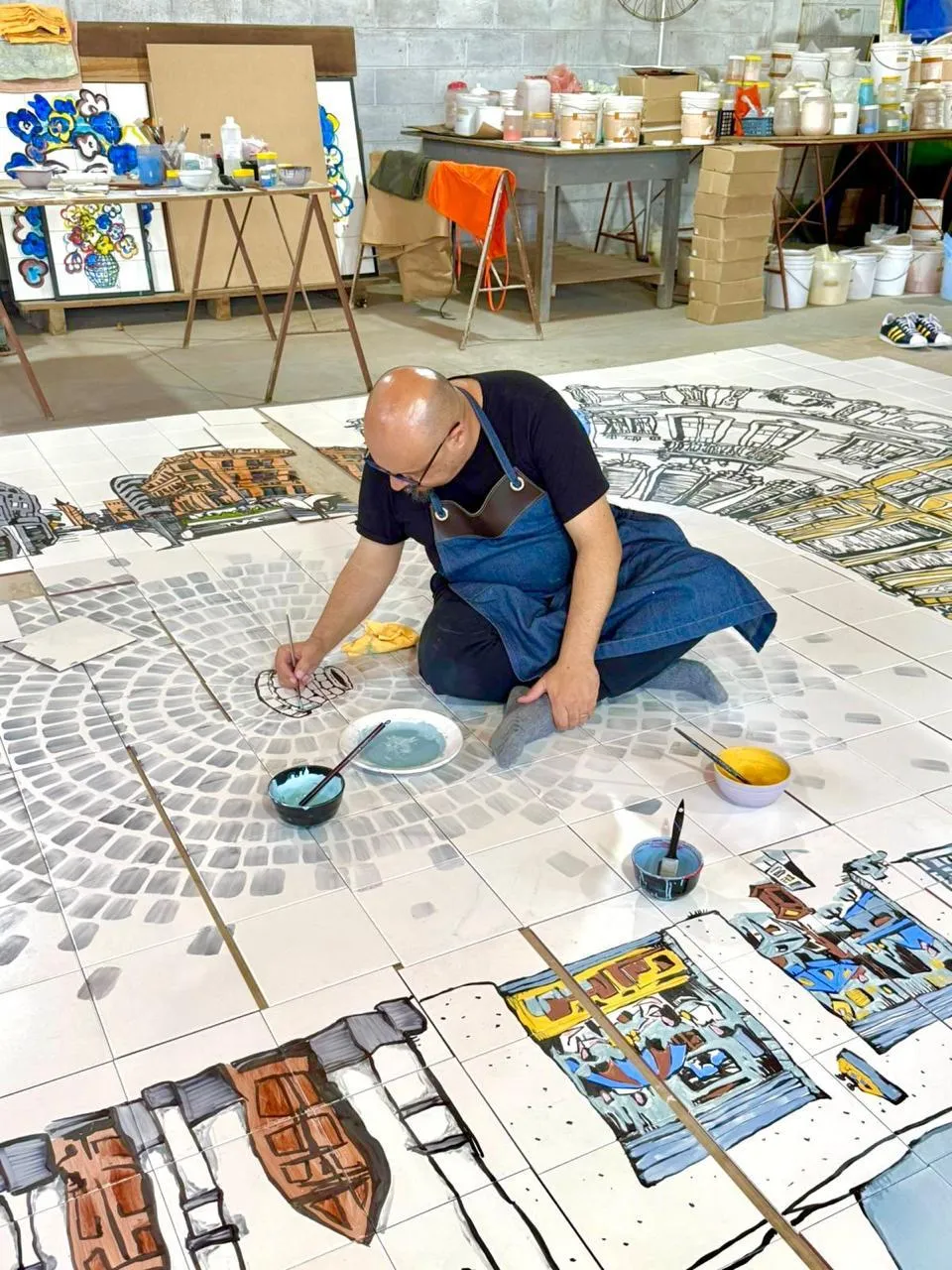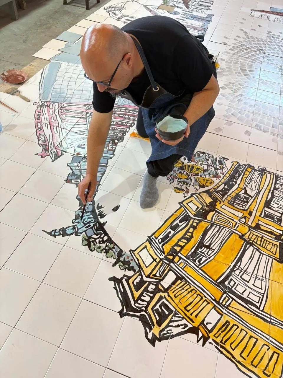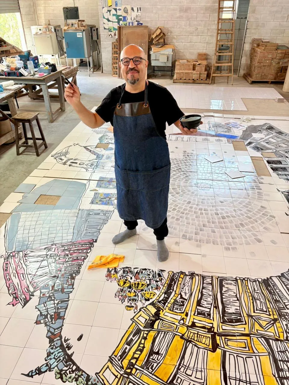 Para botar a mão na massa, Simon contou com a ajuda do Lenzi Jr., um mestre na arte dos painéis. Ele já trabalhou com o pai dele nas obras do Poty Lazzarotto, aquele muralista que todo curitibano se orgulha.