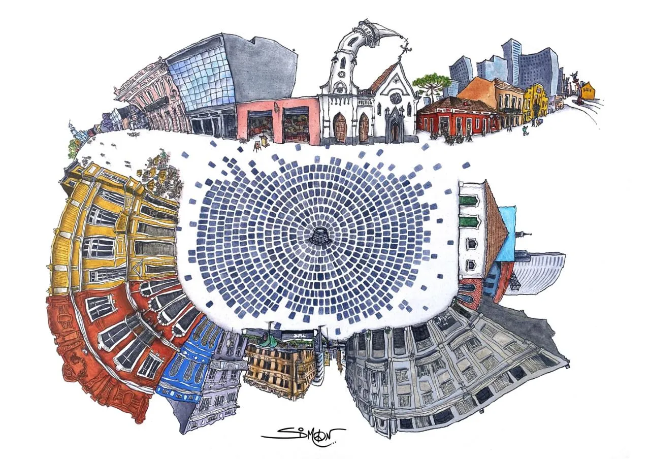 Simon Taylor é um dos artistas que mais exalta Curitiba em sua obra. Ele já lançou os livros “Curitiba em Traço” e até um álbum de figurinhas da cidade. Agora, com esse painel, ele quis dar um rolê 360º pelo Largo. “Esse painel é um sonho de décadas de um piá curitibano que se tornou realidade. E um presente para Curitiba”, disse à Tribuna.