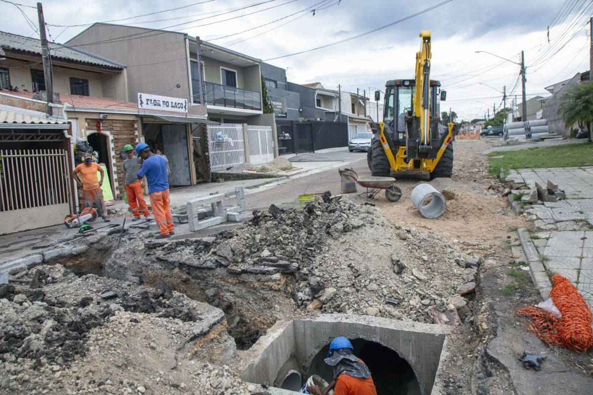 Prevenir alagamentos e mitigar os efeitos das chuvas mais volumosas, estes são os objetivos da obra de macrodrenagem que está em andamento no bairro Uberaba, em Curitiba. Segundo a prefeitura, uma nova galeria de águas pluviais está sendo construída na Rua Aviador Armin Buhrer para ampliar o sistema de drenagem do local.
