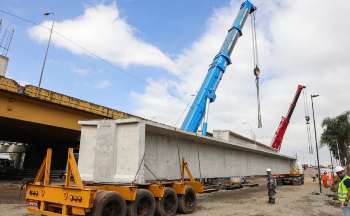 Seis vigas de concreto armado de grandes dimensões foram içadas no Viaduto Tarumã, sobre a Avenida Victor Ferreira do Amaral, entre sábado (25) e domingo (26). Bloqueada para a passagem de veículos, a previsão da Prefeitura de Curitiba é de que a via seja liberada até a próxima quarta-feira (29).