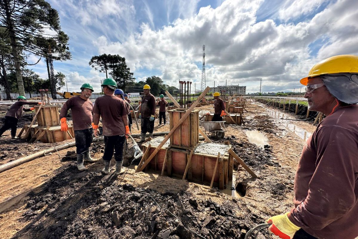 Segundo a Agência de Assuntos Metropolitanos do Paraná (AMEP), já foram executados cerca de 5,2 mil metros quadrados de terraplanagem e a etapa de cravação das estacas da fundação e execução dos blocos de concreto armado atingiu 72%.