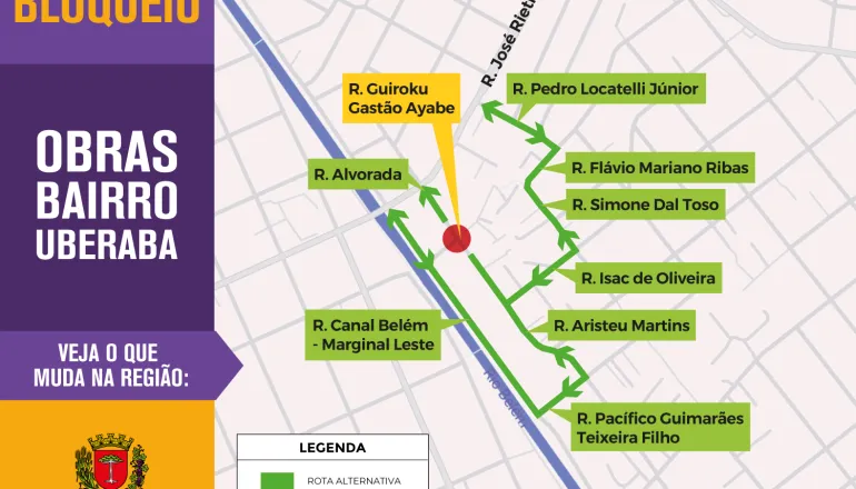 Moradores do Uberaba vão precisar encontrar caminhos alternativos para circular pelo bairro a partir desta quarta-feira (12/11). Um importante cruzamento será bloqueado temporariamente por conta das obras do Novo Inter 2, que não param de avançar pela cidade. O bloqueio total vai acontecer no cruzamento das ruas Guiroku Gastão Ayabe e Alvorada. Mas, segundo a Prefeitura, a situação é rápida – a previsão é de apenas um dia de interdição.