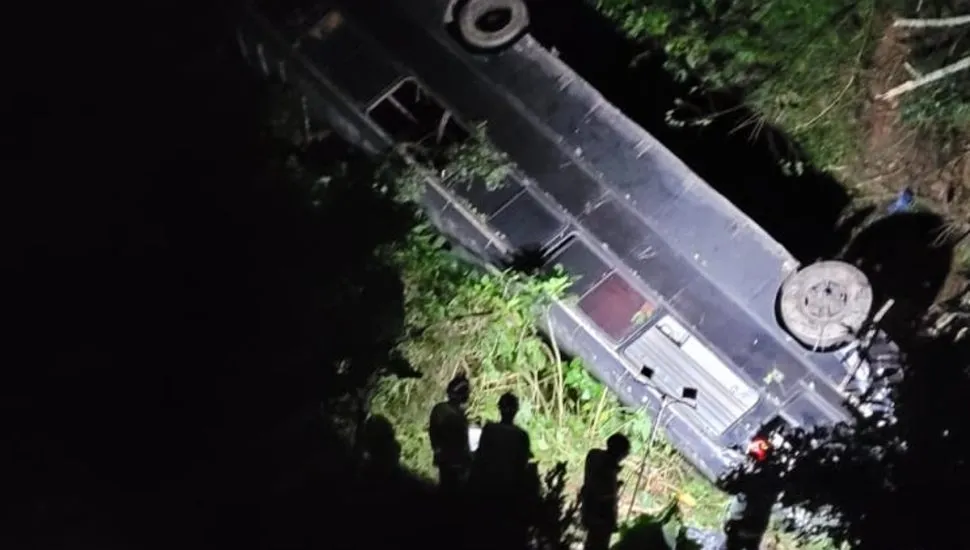 Um homem de 24 anos morreu e outras quatro pessoas ficaram feridas após um ônibus cair em uma ribanceira, na PR-092, em Rio Branco do Sul, na Região Metropolitana de Curitiba, na noite de terça-feira (04).