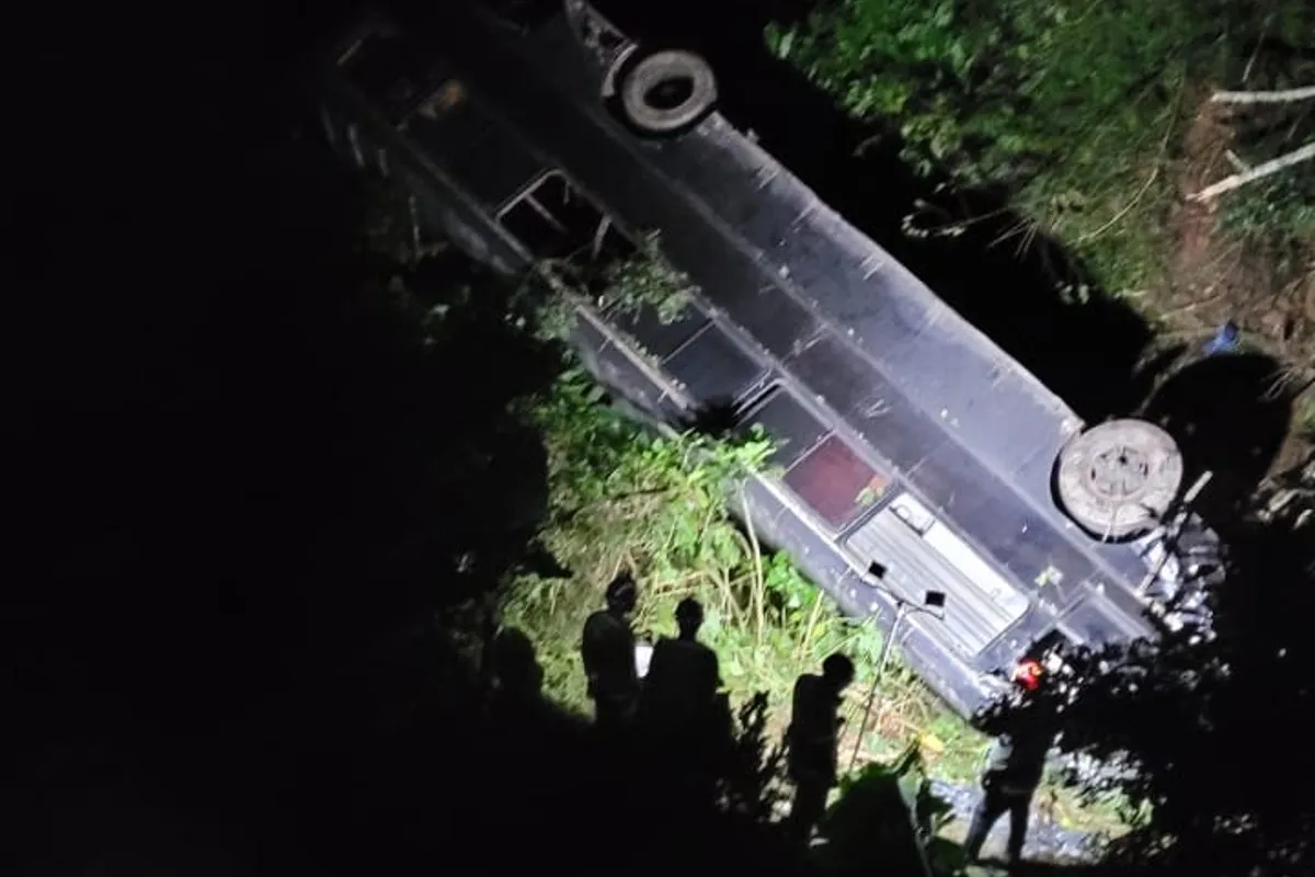 Um homem de 24 anos morreu e outras quatro pessoas ficaram feridas após um ônibus cair em uma ribanceira, na PR-092, em Rio Branco do Sul, na Região Metropolitana de Curitiba, na noite de terça-feira (04).