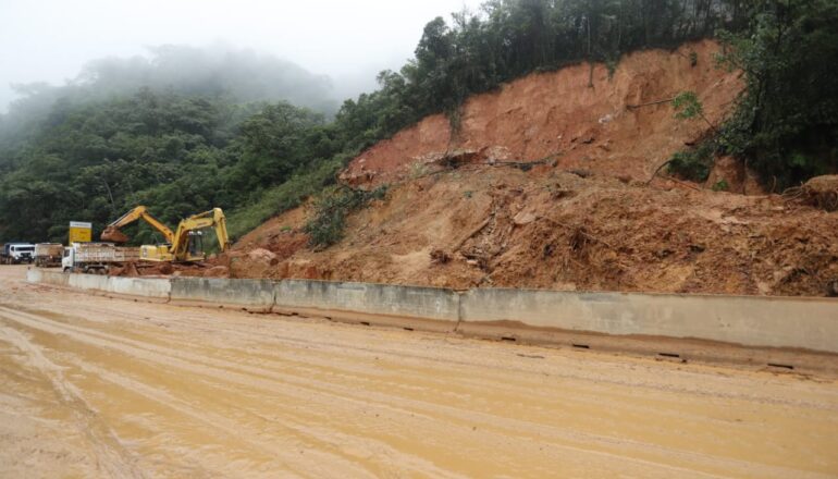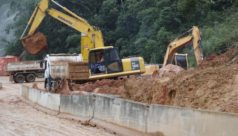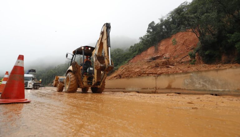 No terceiro dia de operações na região do deslizamento de terra da BR-376, em Guaratuba, as equipes do Corpo de Bombeiros, Defesa Civil, Polícia Rodoviária Federal e da concessionária que administra o trecho avançaram na limpeza da área. Depois da retirada de cerca de 7 mil metros cúbicos de massa terrosa, os bombeiros fazem buscas por vítimas com a ajuda de cães nesta quinta-feira (1°).