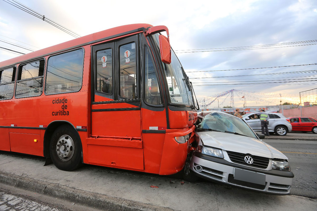 A pancada entre um ônibus biarticulado da linha Santa Cândida-Capão Raso e um carro deixou pelo menos uma pessoa ferida na tarde desta terça-feira (09).