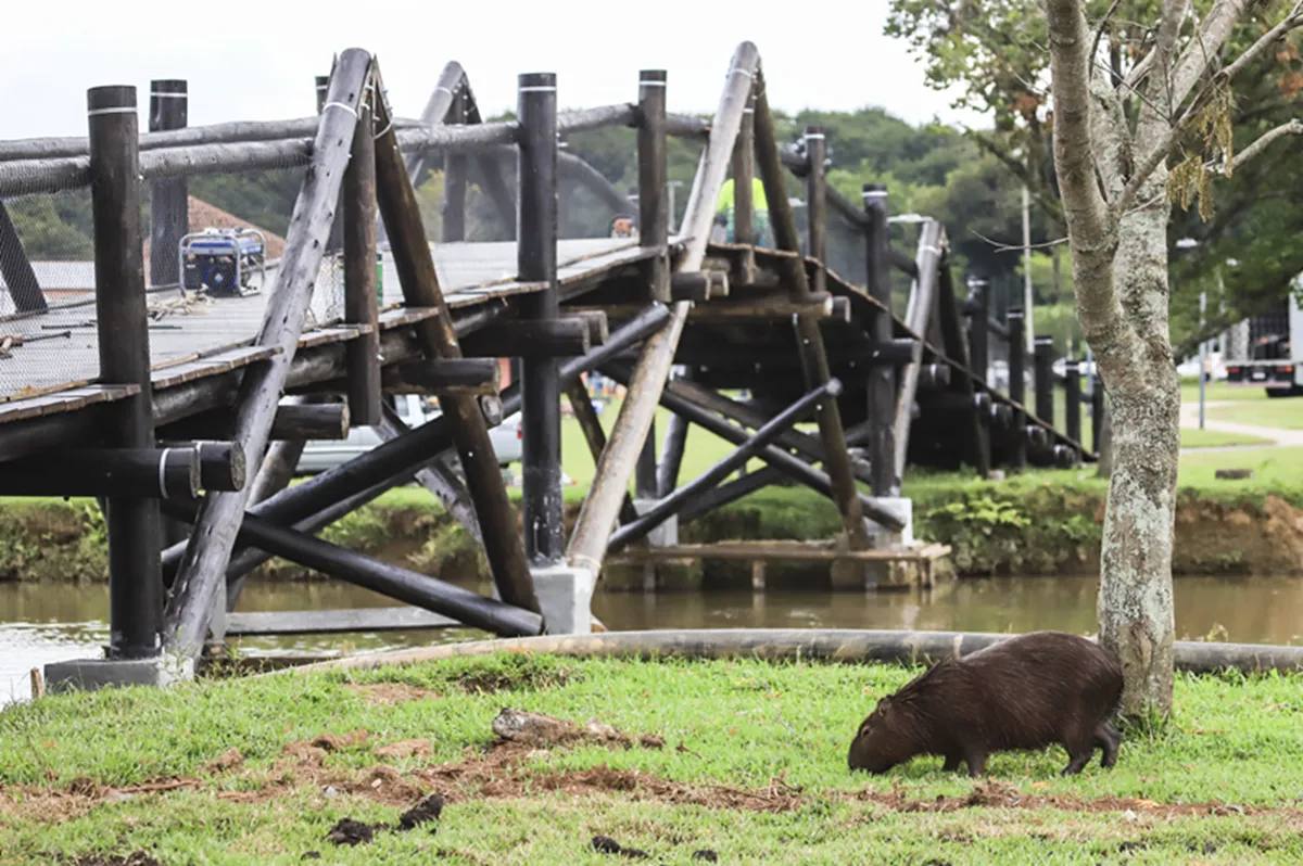 Os trabalhos se concentram na finalização da reforma da passarela de madeira que fica ao lado do Salão de Atos. A obra executada pela Secretaria Municipal do Meio Ambiente mudou e modernizou a antiga ponte. As escadas com degraus deram lugar a rampas.