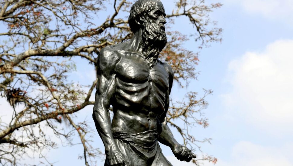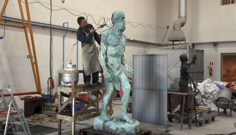 Uma grande escultura em bronze, que faz leitura de uma obra perdida do escultor João Turin (1878-1949), passa a fazer parte do Jardim das Esculturas do Memorial Paranista, no Parque São Lourenço, em Curitiba, a partir desta quinta-feira (21).