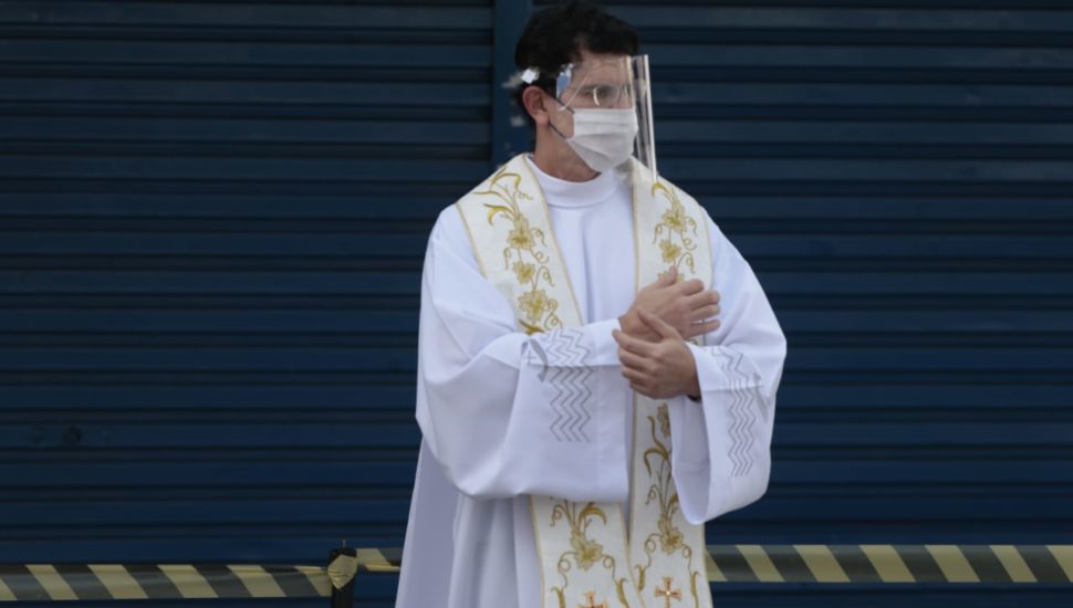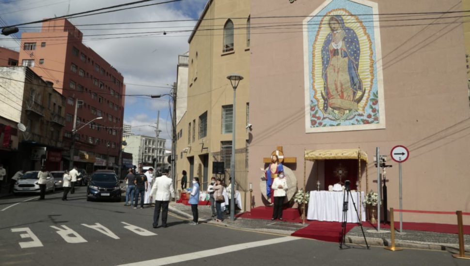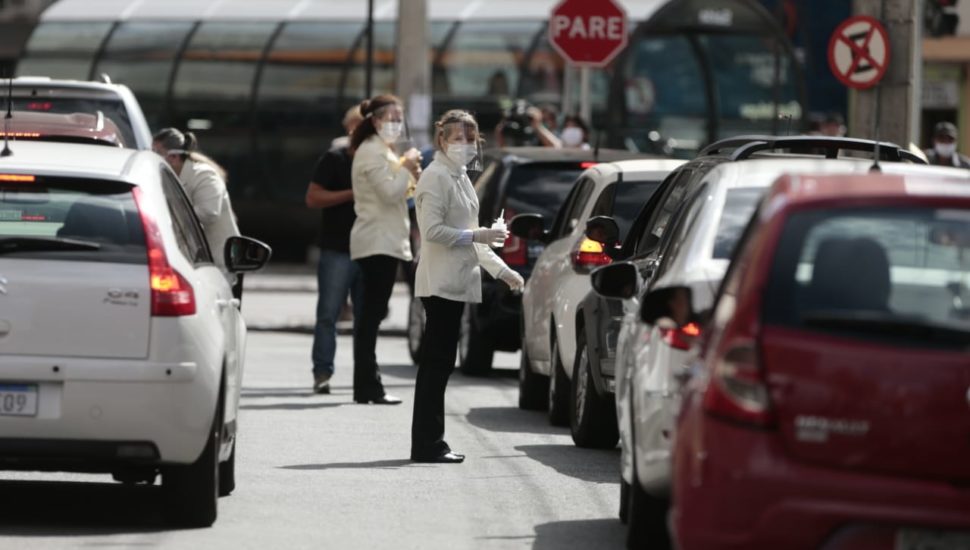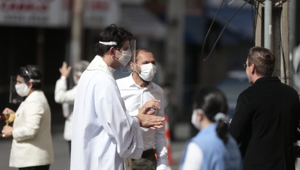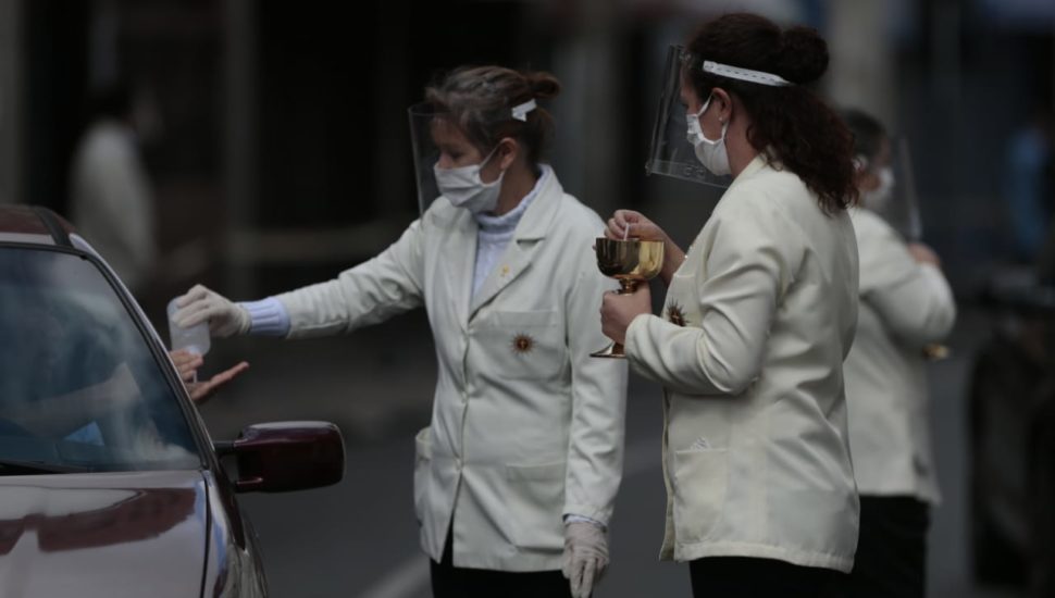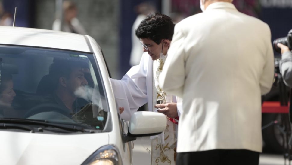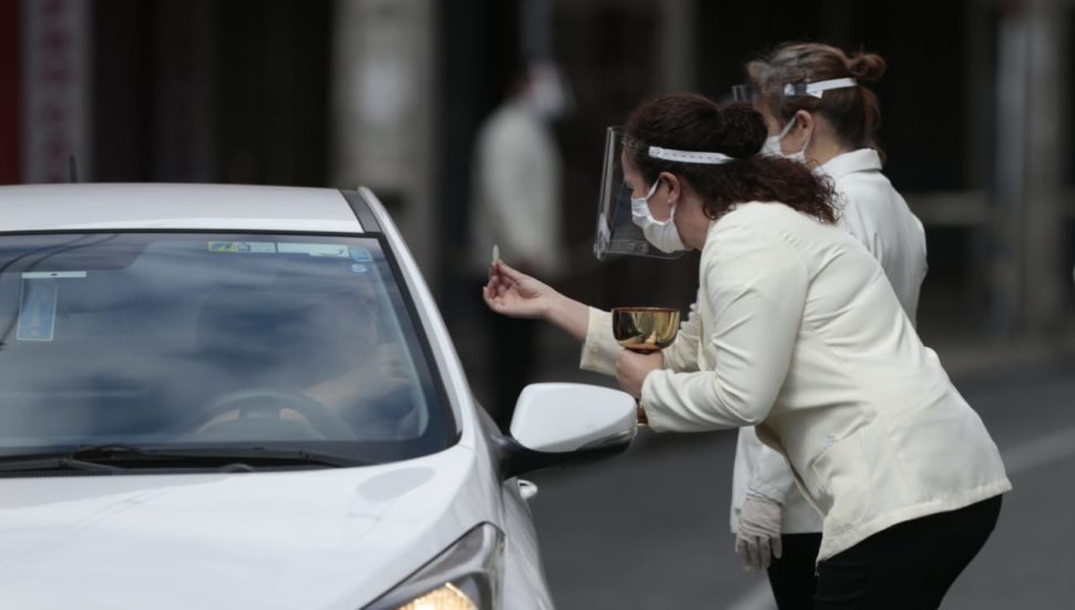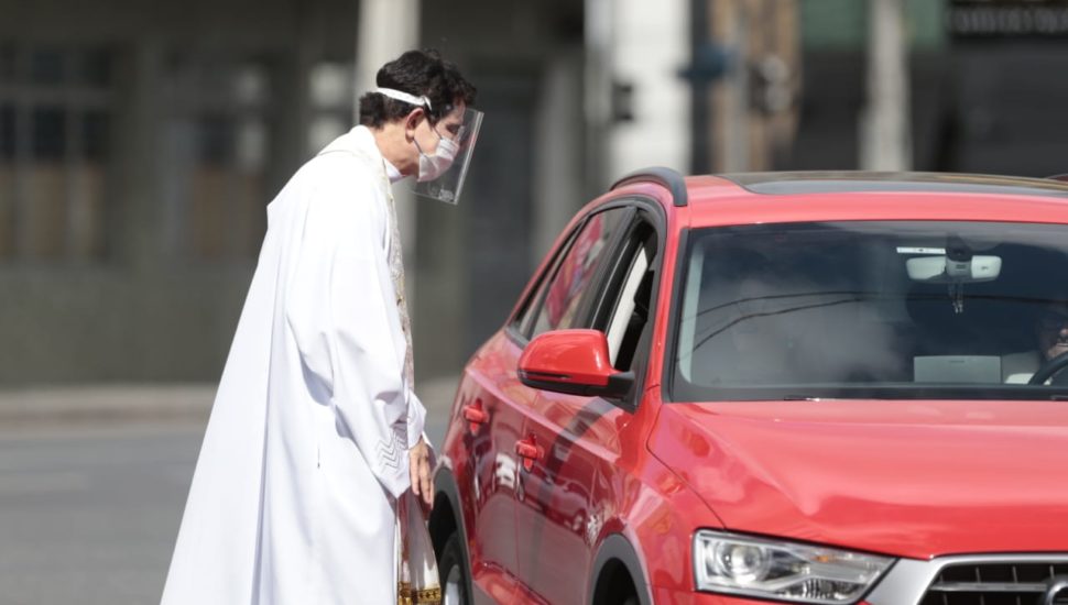 As celebrações religiosas de Páscoa em Curitiba foram adaptadas para evitar a transmissão do novo coronavírus. Por isso, esse ano, o Santuário da Nossa Senhora do Guadalupe, no Centro, está oferecendo nesta manhã, até o meio-dia, a hóstia consagrada aos fiéis pelo sistema drive thru. O momento da Eucaristia foi adaptado para evitar a transmissão do novo coronavírus entre os fiéis.