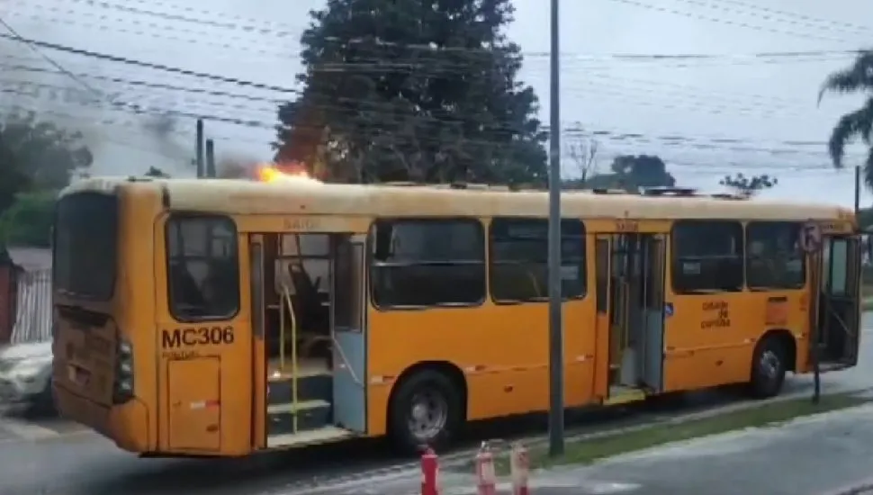 Um ônibus da linha 916 – Pinheiros pegou fogo na manhã desta quinta-feira (09/10), na Rua Saturnino Miranda, no bairro Santa Felicidade, em Curitiba. O princípio de incêndio começou na parte superior do veículo e assustou os passageiros. Ninguém ficou ferido.