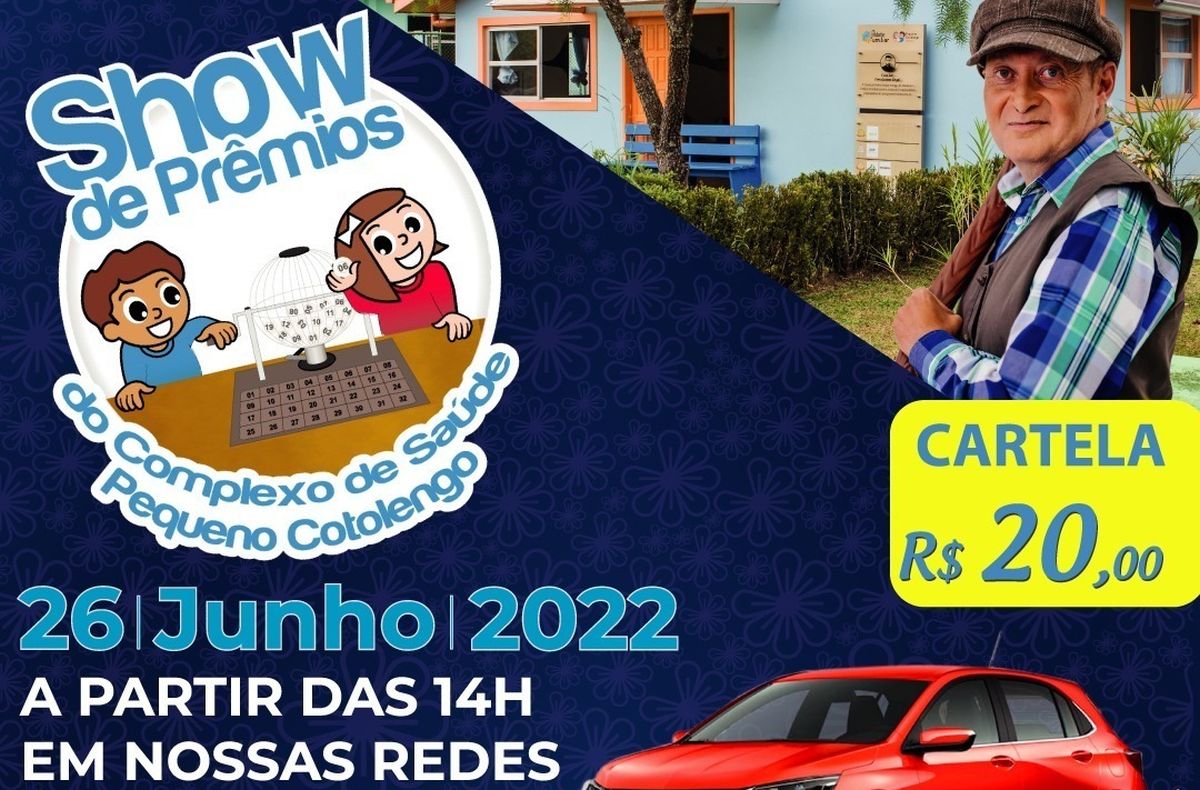 O Complexo de Saúde Pequeno Cotolengo está promovendo um verdadeiro “Show de Prêmios” em prol da causa da pessoa com deficiência. O bingo acontecerá no dia 26 de junho, às 14h, e será transmitido virtualmente pelas redes sociais da Organização. O Pequeno Cotolengo abriga 230 pessoas com múltiplas deficiências e egressos do SUS.