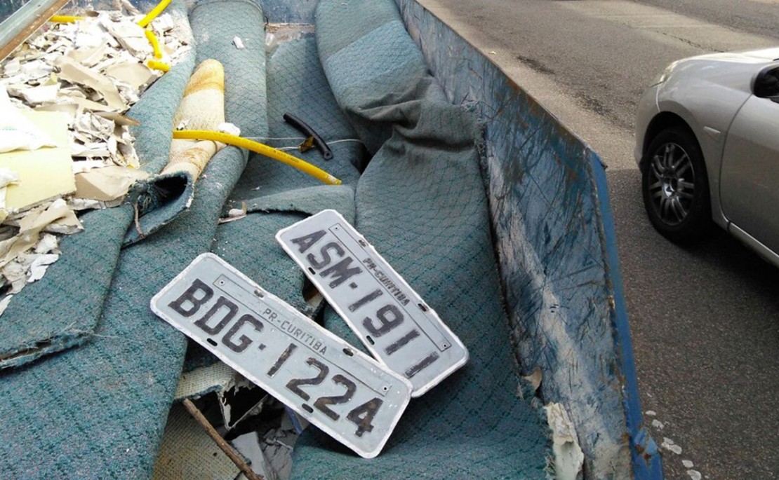 Ambas as placas são de Curitiba, com os registros BDG-1224 e ASM-1911. A funcionária de um comércio da região confirmou que as duas placas estão na caçamba pelo menos desde a manhã de quinta-feira (15). Outro motorista disse que chegou a passar por cima de outras placas abandonadas na rua na manhã desta segunda (19).