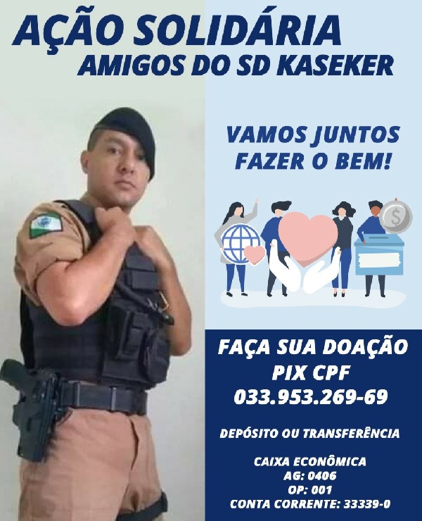 Para colaborar com a vaquinha da família, os dados são da conta bancária da esposa do soldado Kaseker, Vanessa Teter Pancieri da Silva.