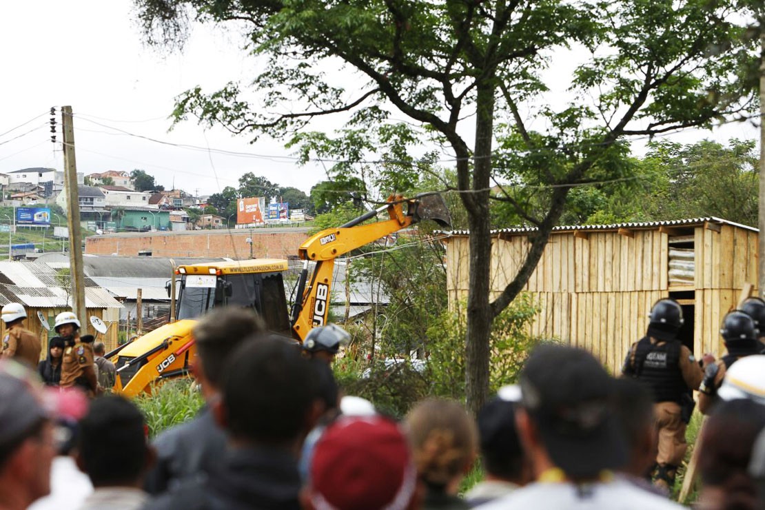 A reintegração foi decretada pelo juiz da Comarca de Colombo. Além disso, o Conselho Tutelar, o Serviço Social e Desenvolvimento Urbano e outros órgãos envolvidos também acompanham a ação. O Corpo de Bombeiros, a Defesa Civil e uma ambulância também estão presentes, mas não ainda não foi preciso socorro.