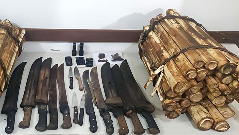 Foi constatado que o local tinha uma estrutura com camas e outros recursos que permitiam aos palmiteiros permanecer dias na mata. Os policiais militares encontraram facas, facões, lanternas, projéteis de espingarda e 55 gramas de maconha, além de feixes de palmitos recém-retirados.